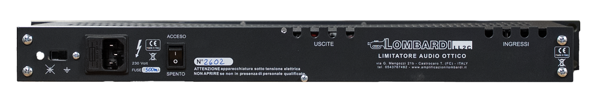 In caso di spegnimento dell’apparecchio tramite l’interruttore posto sul pannello posteriore, il segnale audio viene completamente interrotto, eliminando ogni possibilità di bypass del limitatore.