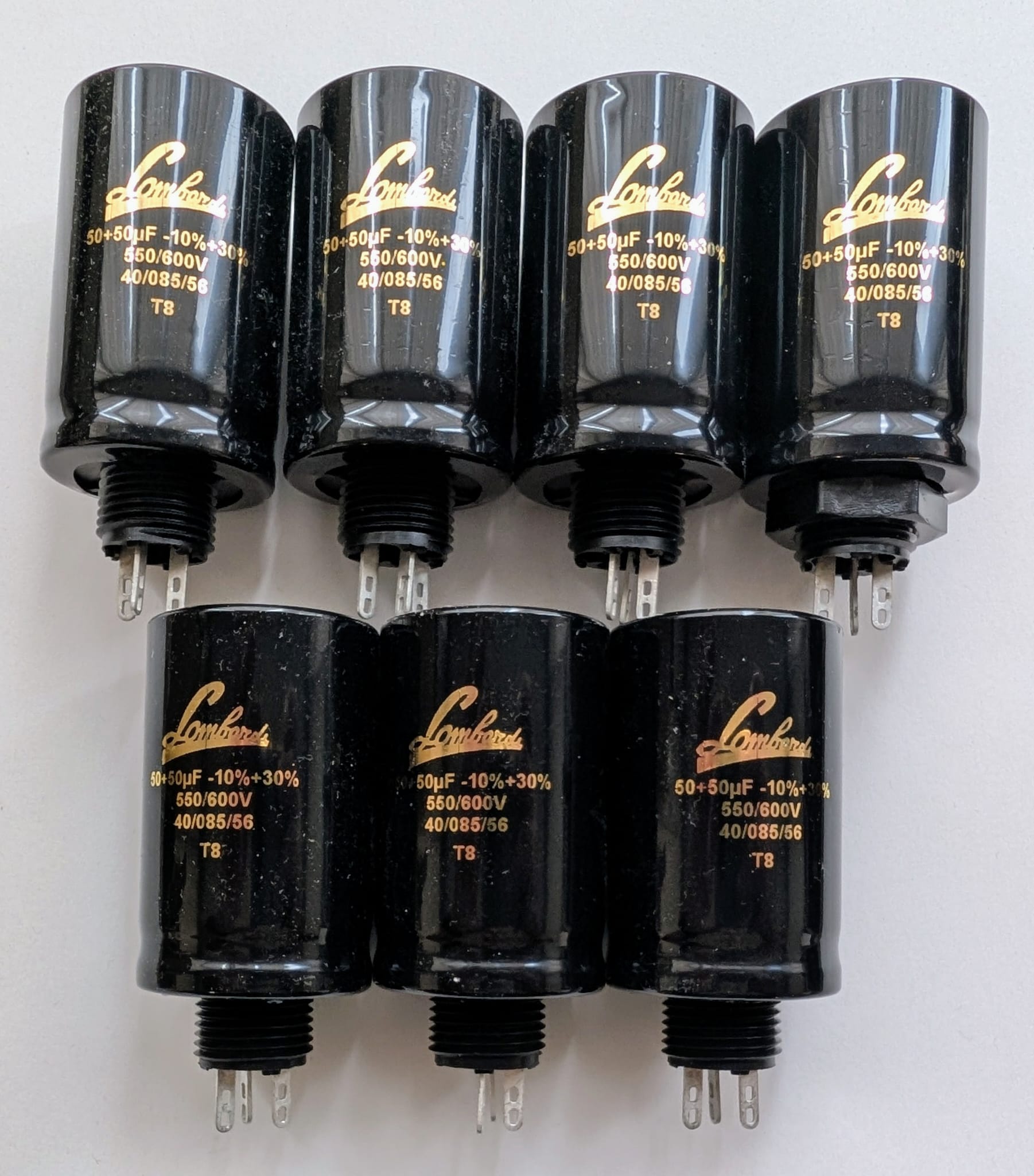 n. 07 Condensatori 50+50 µF 550V 3 terminali (2 cap e 1 Ground)  Elettrolitici a Vitone Lombardi
